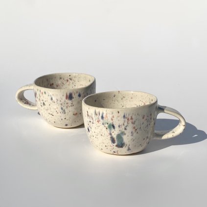 Hrnek má objem 350-400ml a vznikl z kameniny. Byl modelován v ruce přes formu, tudíž není točený a každý je originál.výška: 6,5cm , průměr: 10,5cm Fotografie je pouze...