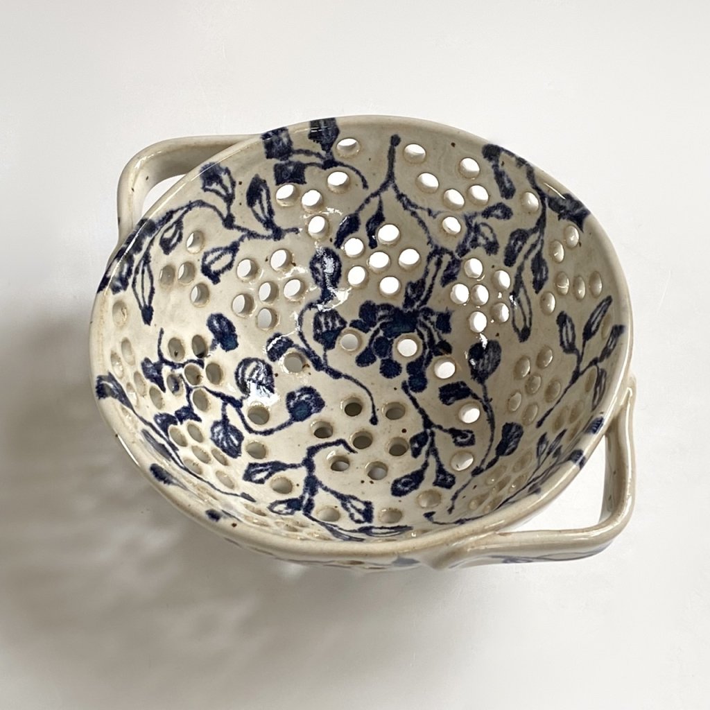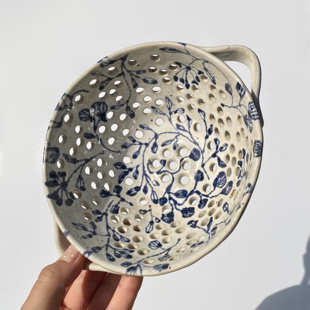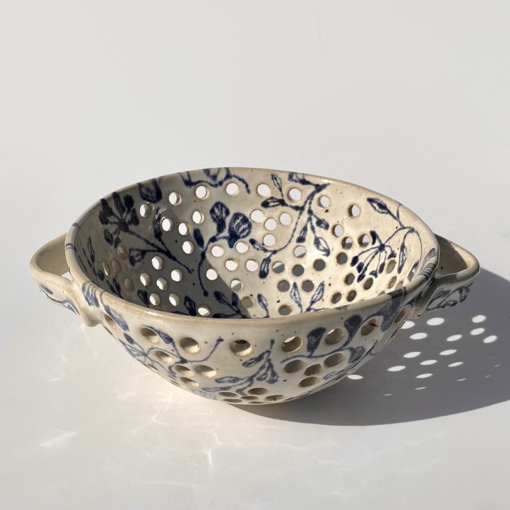 Cedník vznikl z kameniny. Byla modelován v ruce přes formu, tudíž není točený a každý kus je tak trochu originál.