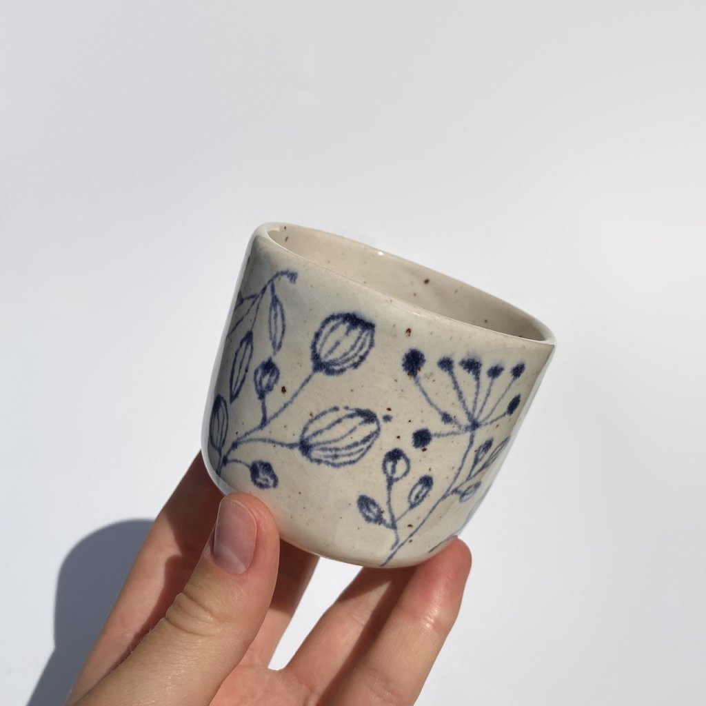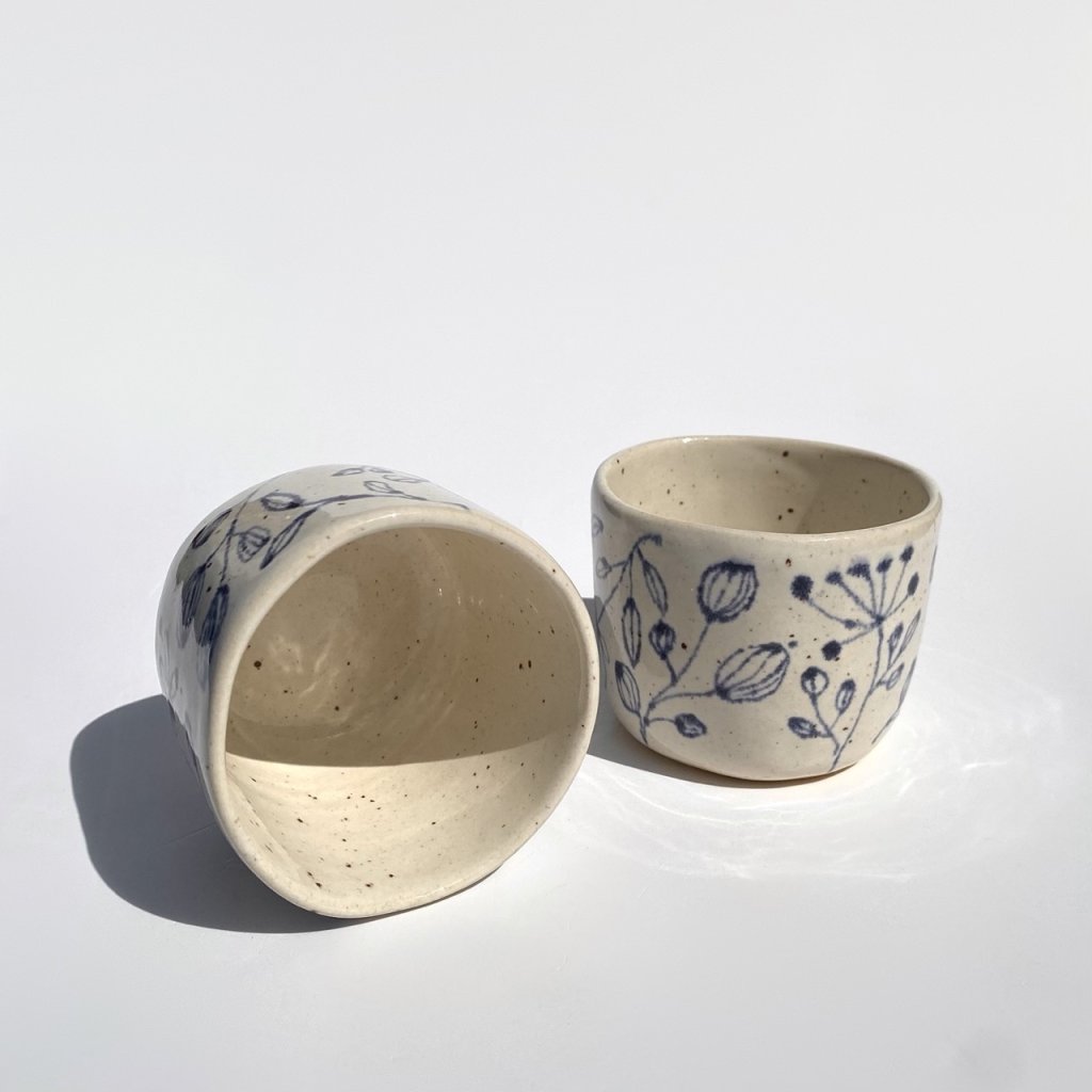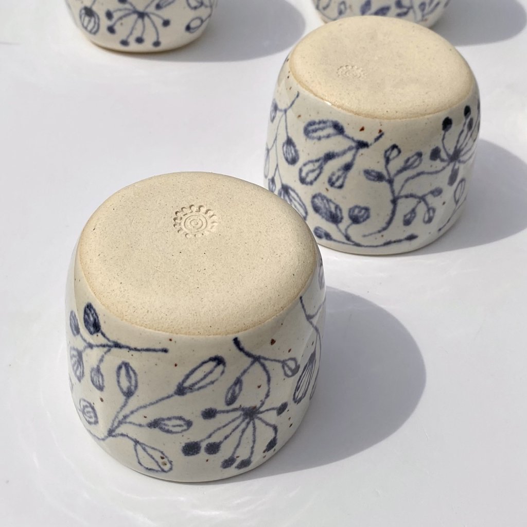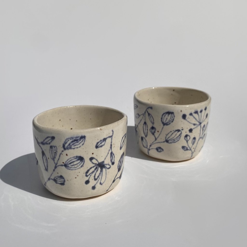 Fotografie je pouze ukázková a kalíšky se od sebe můžou mírně lišit prokreslením glazury, sytostí i tvarem. Kalíšky jsou ručně vyráběné a malé nedostatky jen dokazují jejich originalitu.