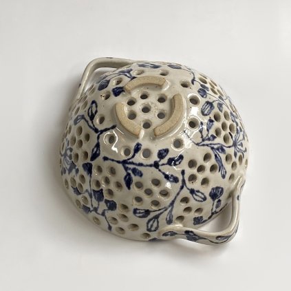 Cedník vznikl z kameniny. Byla modelován v ruce přes formu, tudíž není točený a každý kus je tak trochu originál.výška: 7,5cm , průměr: 15,5cm Fotografie je pouze ukázková...